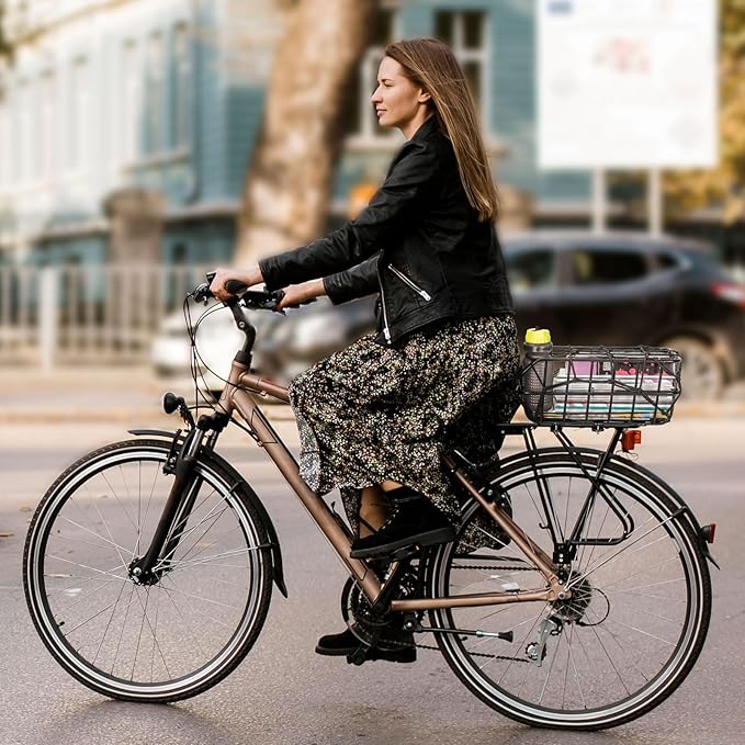 - 【Multi-purpose Basket】: Transform your bicycle or ebike into a versatile cargo-carrying powerhouse with the Large Bikes Basket Cargo Carrier. This durable and spacious carrier is designed to make your biking experience more practical and convenient, Whether you're a commuter, an urban explorer, or a weekend rider, this rear bike basket adds a new level of versatility to your bike, enabling you to transport goods hassle-free.