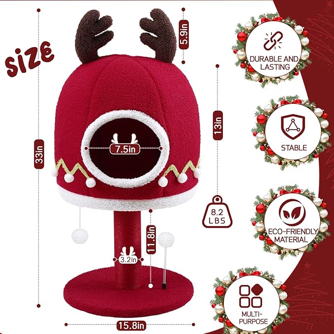 - CHRISTMAS CAT TOWER - We designed this Christmas theme cat tower specifically for cats, the bright red color is striking, it is the most suitable Christmas gift for cats. It's an excellent cat activity center, where you can meet your cat's multiple needs of scratching, climbing, moving and relaxing. And the modern design is suitable for most homes and can be placed anywhere in your home as a decoration.