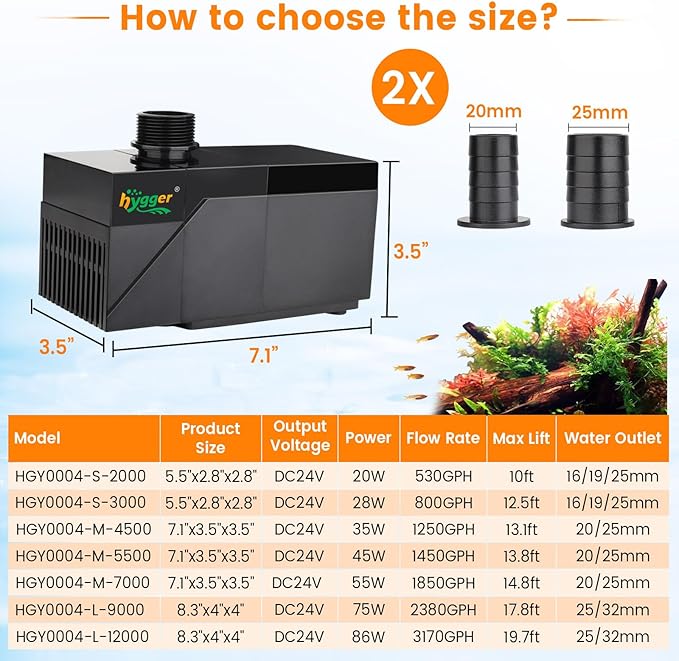 - Complete Accessories and Reliable: The 35W aquarium pump comes with the accessories you need. The set includes 1x Water pump. 1x Controller, 2x Water outlet connector(20/25mm),1x Adhesive and 1x User manual. We provide a 24-month-warranty. If there is any problem with our product, please contact us, We are happy to help you.