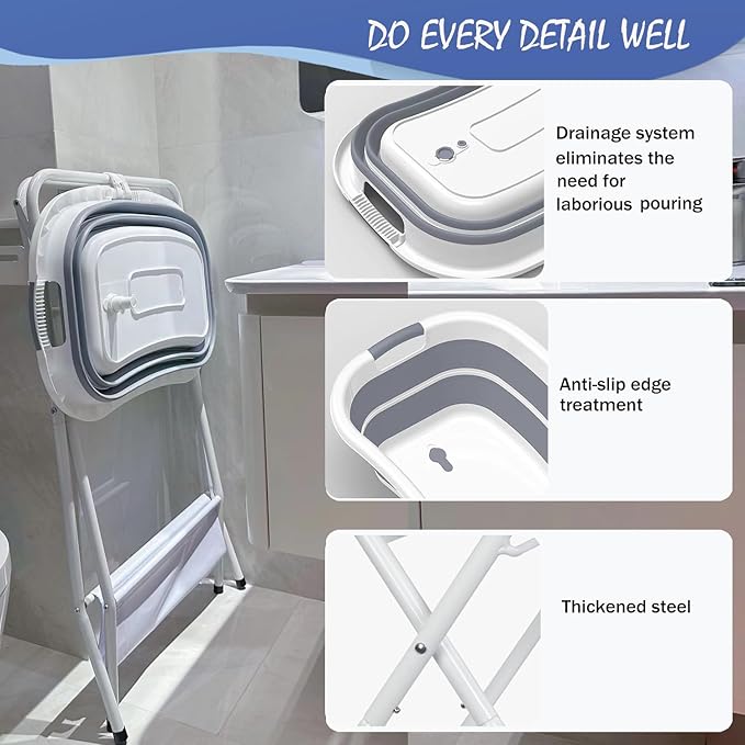 - Quick fold: The portable pet bathtub folds easily and can be folded and unfolded with just 1 hand. Quickly folds from 16.9 inches to 3.9 inches thick for easy storage in every corner to save more space during storage and transportation. Portable dog bath tub suitable for indoor and outdoor use