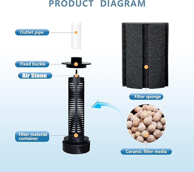 - Easy top set up & clean: simply install an airline into the unit and turn on the air pump, simply rinse and squeeze sponge in tank water