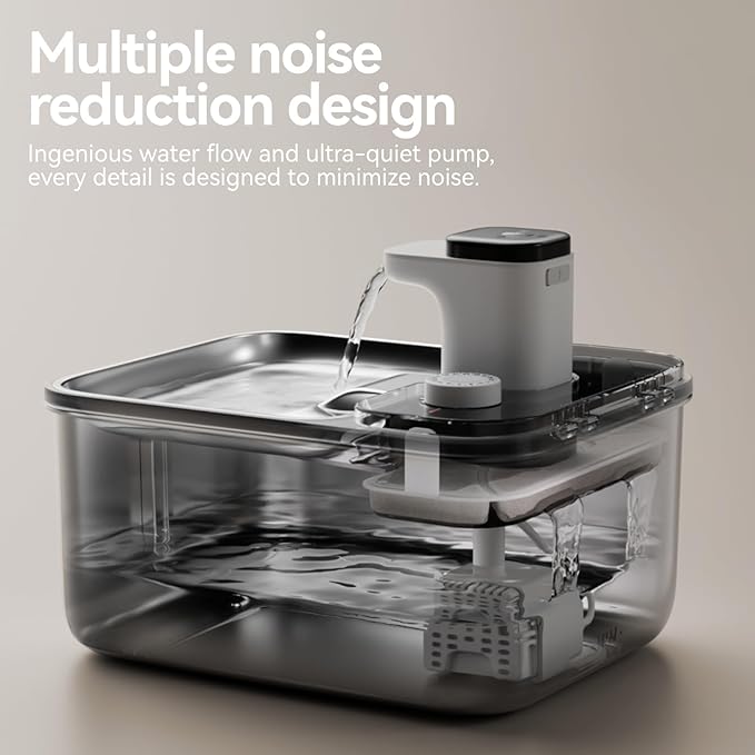 - [Multiple Noise Reduction]Thoughtful noise reduction elements are integrated into every aspect, from the ultra-quiet pump to the ingeniously designed water flow. It minimizes noise for a peaceful drinking environment.
