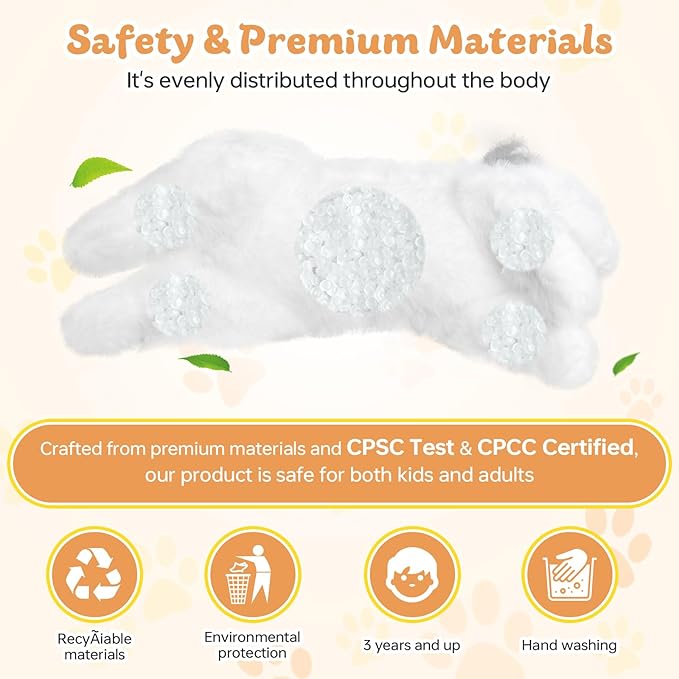 • 【Safe Material】Safety is our top priority. Our weighted plush toys are made with safe materials and cotton that have been tested by a certified lab. Rest assured that you are bringing home a safe and reliable companion