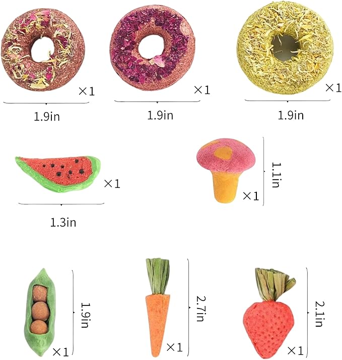 - [Multiple benefits] These rabbit chewing toys are rich in fiber and are very beneficial for digestion. They can easily attract your pet to play and exercise. You can interact with your little one, and it will promote your relationship with them.