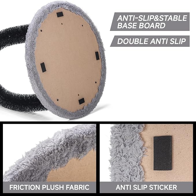 - Stable Base Board: This cat grooming brush is maded of stable density board with a diameter of 15β heavier than wooden board. The bottom with anti slip pad, combined with anti slip plush cloth will not slip even on smooth ground.The base is stable enough for vigorous scratching.