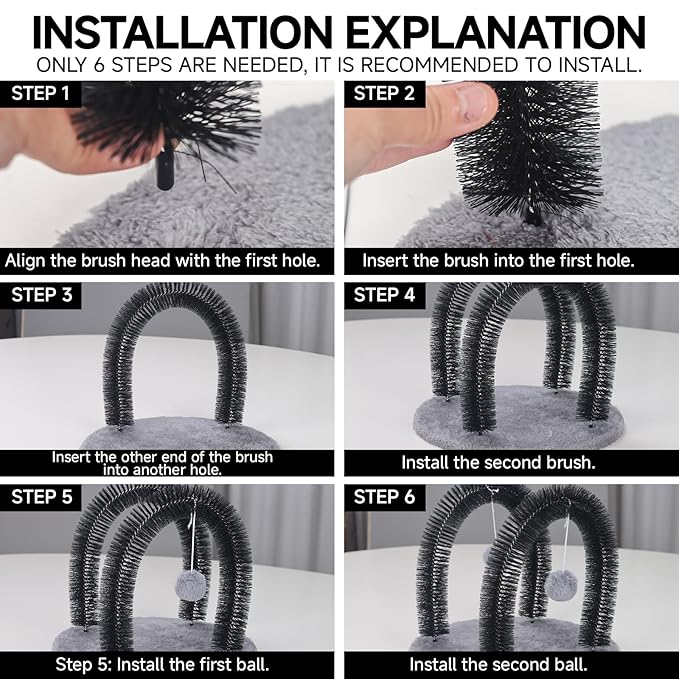 - Self Cleaning Design: Cats can use the cat arch self groomer cat massager on their own when their owners are not around, allowing them to clean their fur more freely and flexibly. It attract cat's attention easily.Cats enjoy using it.