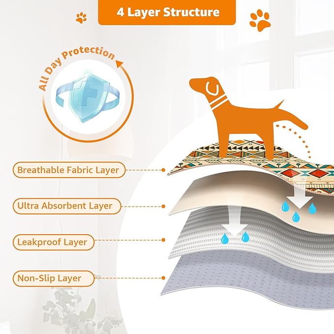 - Stylish Design:The washable dog pee pads are printed with retro tribal elements, which can better dress up your floor, sofa, bedroom, and even car and picnic, perfectly combining functionality and fashion