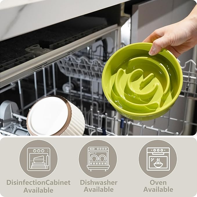 - 【Safe Sturdy Ceramic Material】Enjoy food safely and healthily — Plastic dog bowls are often bitten by dogs, resulting in the plastic being ingested by dogs, which is harmful to dogs' health. We prioritize your pet's health by using high-quality ceramic for our slow feeder dog bowls.