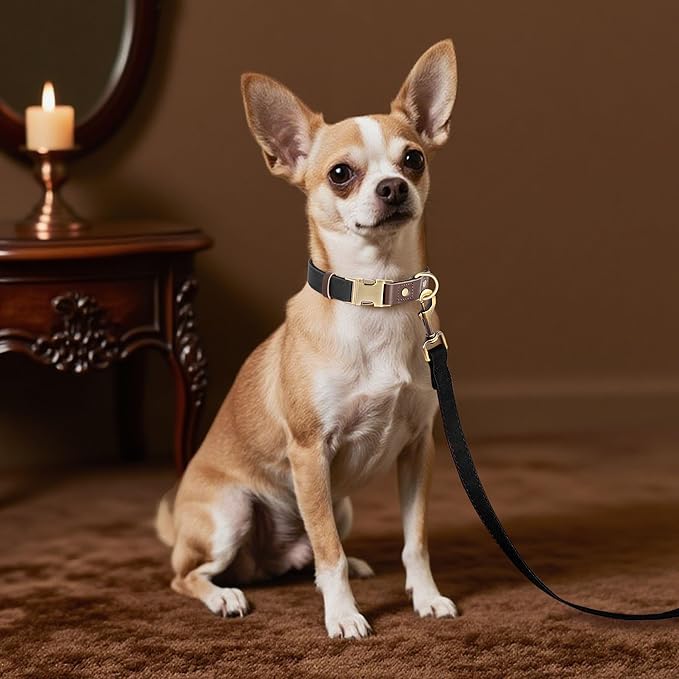 Didog Soft PU Leather Dog Collars for Small Dogs,Classic Adjustable Dog Collars with Quick Release Metal Buckle,Easy Clean and Comfortable with Nylon Lining,Black,S Neck 10-15"