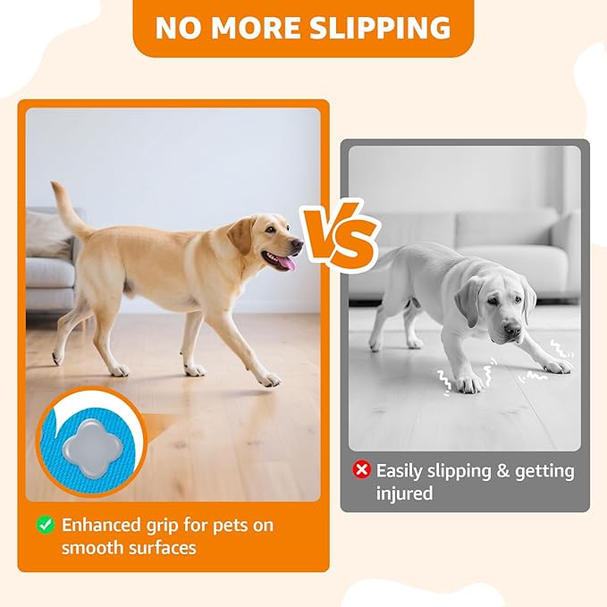 - 【Give Your Dog Stability Again】Gentle non slip paw pads for senior dogs with weak legs, unsteady paws or arthritis, building confidence. Soft & thinner material eases joint pressure while protecting delicate paws from smooth surfaces like hardwood floors and tile