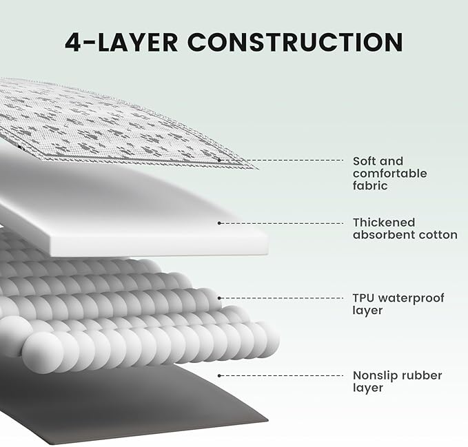 - Thick & Durable-MaterialsοΌThicker and more absorbent, saving the time you need to replace pads. The back of them does not easily get saturated. The durable waterproof layer reduces liquid from leaking to the floor/carpet. Comfortable and no tracking. Keep your home clean.