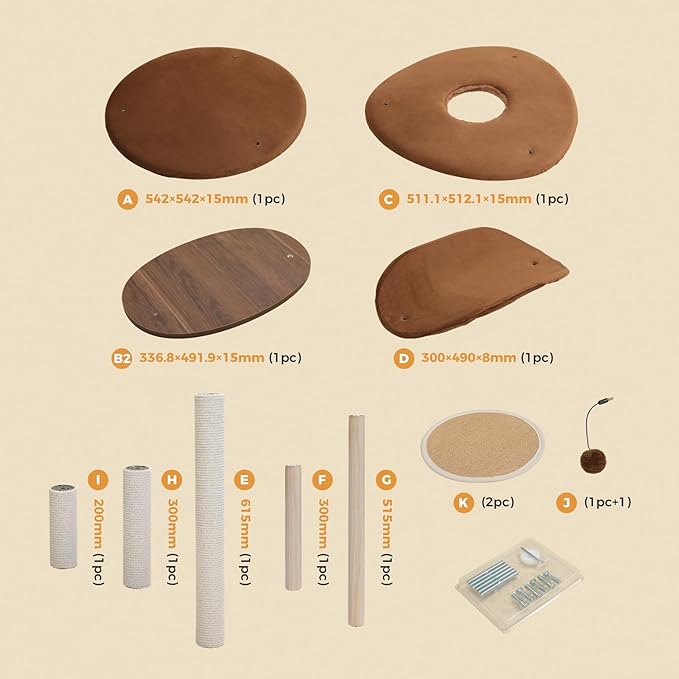 - MODERN DESIGN: The wooden elements added in this cat tower and the irregular platforms modernize the whole cat tree. When designing this cat tree, the color of beige was widely employed to create a warm and harmonious tone. It can also be perfectly fit in furniture with various styles