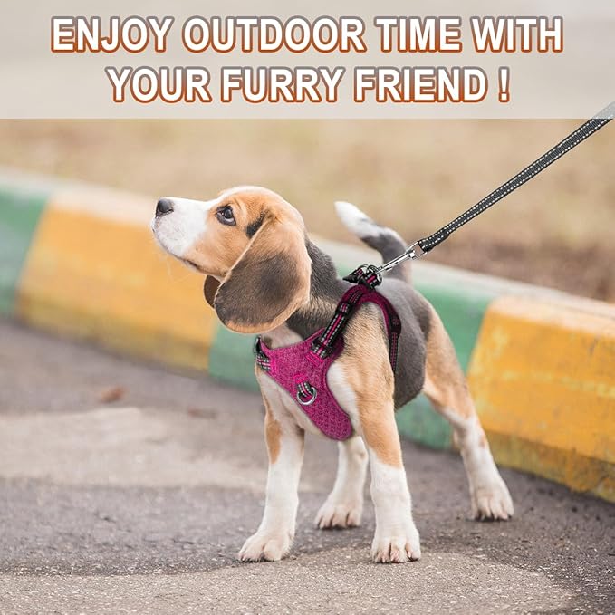 Dog Harness Step in Dog Vest Harness, Reflective Adjustable Puppy No Pull Harness Breathable Soft for Small and Medium Dogs Cats, Pink/Black, XXS