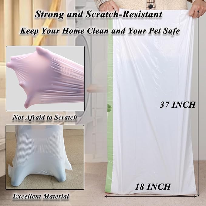 - Durable and Scratch-Resistant: Different to general 1.5 mil litter bags, our litter liners are made of 2.0mil thick material, the products resistant to even the playful cat scratches. Whether your pet is curious or energetic, these bags remain strong and reliable, enjoy every moment with your pet with confidence.