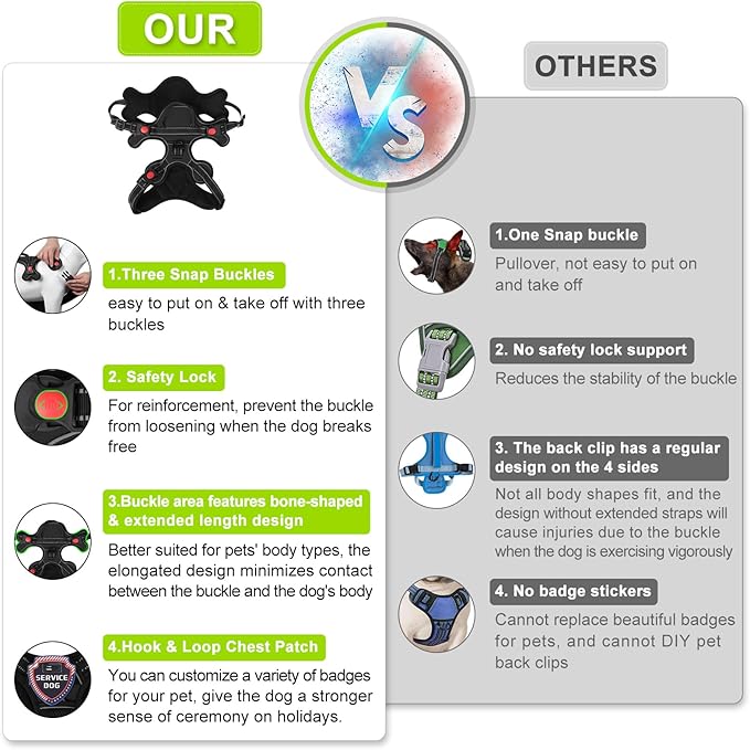 - 【 No Pull & Choke-Free Design 】Designed with your dog's comfort in mind, our No Pull Dog Harness is structured to distribute pressure evenly throughout your dog's body, preventing choking and discomfort during walks. This feature offers a more humane and safe way for you to control your dog.