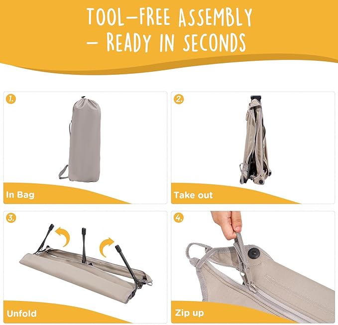- COMPACT & FOLDABLE: This foldable dog bed features an ultra small 17"x8" folded size perfect for traveling & camping; zip it up in 15 seconds for a comfortable outdoor dog bed for your furry friend.