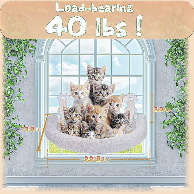- 😺【Firm Grip Suction Cups】Our Cat Window Bed features top-of-the-line suction cups for enhanced security. They engage instantly, creating a strong hold that promises stability for your kitty's window cat door perch.
