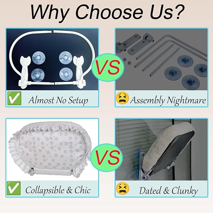 - 😺【Instant Setup Cat Hammock】 Simply press 4 suction cups on any window . Your cat can start using this window perch for cats inside in under 1 minute.