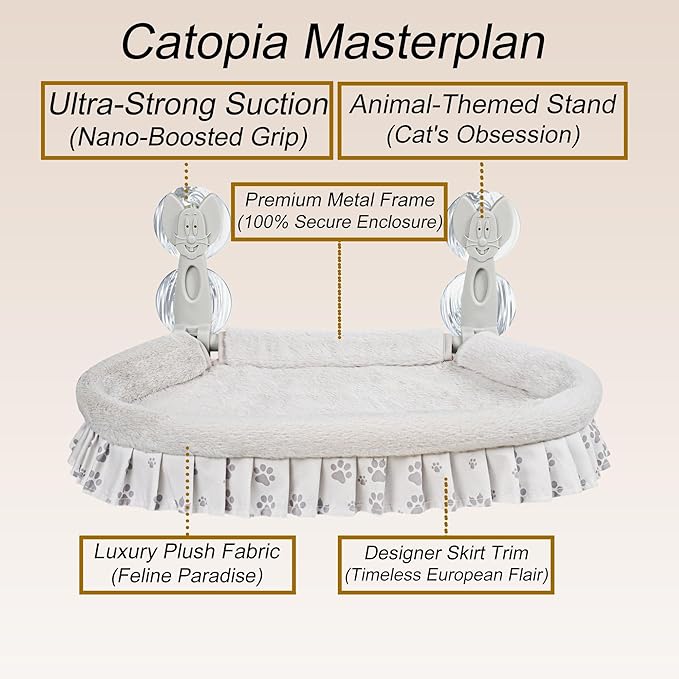 - 😺【Holds Up to 50lbs Securely】 Industrial-strength suction cups with included nano-grip strips ensure this cat window bed stays firmly attached, even for active large cats.