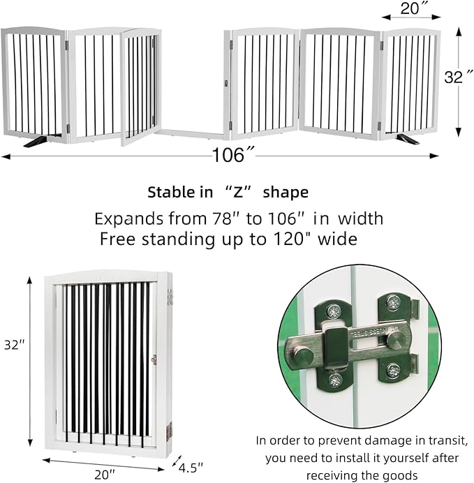 - 【Collapsible and Expandable Design】 ZJSF's dog gate is freestanding and can be folded out into the wide z-shape that allows you to use it in full indoor, double gate, or standard doorways, bedrooms, staircases or anyplace in your house.