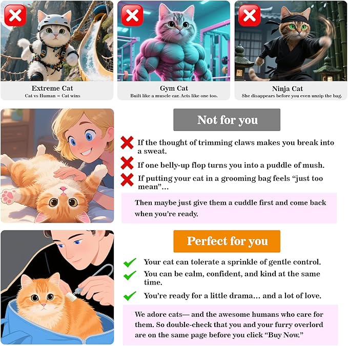 - Cats are naturally afraid of water, so they have fierce resistance when bathing.Perfect for Bathing、Teeth and ears cleaning、Take eye drops、Nail Trimming、Take medicine、Examining 、Injecting and other occasions.