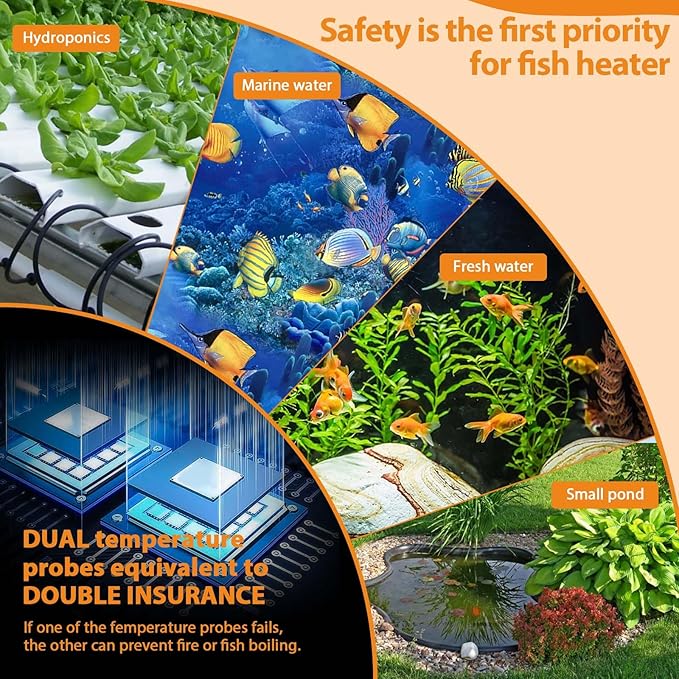 - External digital controller: Our external smart HD controller of the heater is designed with your convenience in mind, the 9.8-foot long cable cord can easily set the temperature. The temperature adjustment range is 68-93β. The digital LED display can accurately display the real-time water temperature, allowing you to easily understand the temperature changes in the fish tank. There is also a clear heating indicator on it. No need to buy an additional thermometer, saving you money