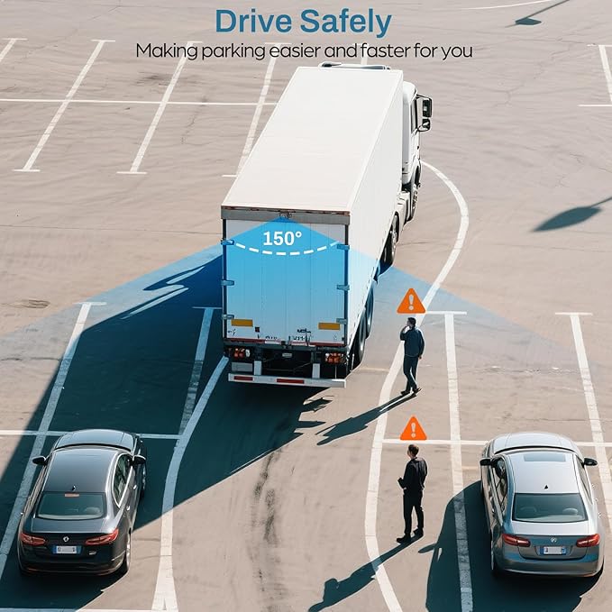 - Blind Spot Pedestrian Detection: The BSD backup camera system can accurately detect people or vehicles near you. When someone approaches while reversing, it will immediately sound an audible alarm to remind you of potential risks and avoid collisions, improving driving safety. The monitored area can be DIY set according to your actual needs.