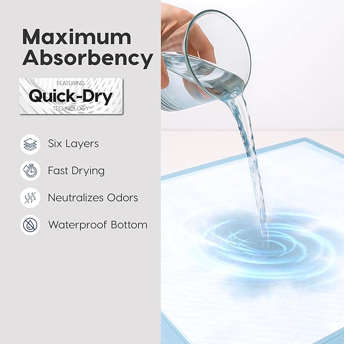IRIS USA Dog Pee Pads – Puppy Essentials, Dog Pads, Quick Dry, Leak Proof, Thick Absorbent 6-Layer Design for Potty Training, Regular Size 22" x 22", 100 Count