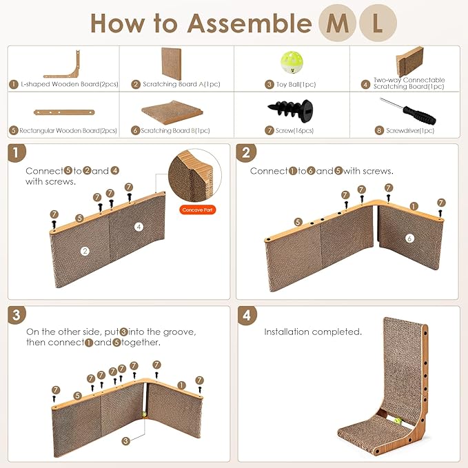 - EASY INSTALLATION: Our cat scratching board adopts a simple installation method and comes with instructions and necessary tools. We also provide an installation video so that you can install it quickly and easily.
