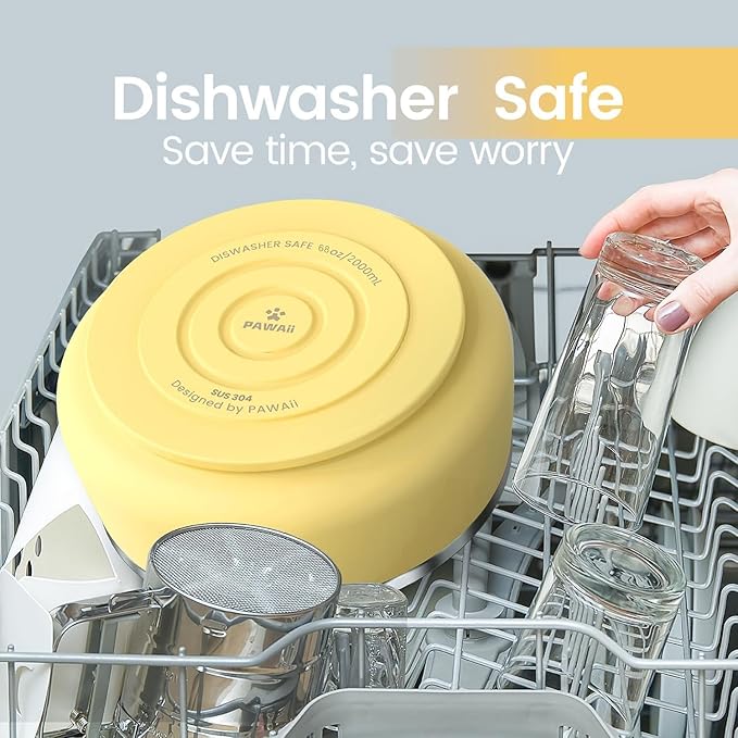 - 𝐀 𝐛𝐫𝐞𝐞𝐳𝐞 𝐭𝐨 𝐜𝐥𝐞𝐚𝐧: You can wash this dog feeder in a dishwasher or manually. Pawaii stainless steel dog bowl repels oil, does not hide dirt, and can be cleaned by simple flushing.