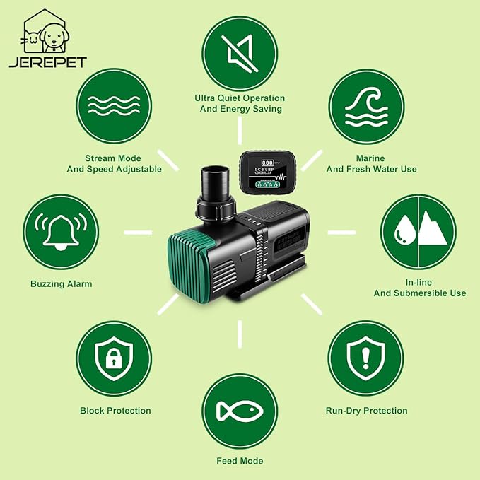 - Ultra quiet aquarium water pump:used seal impeller and ceramic shaft,efficient and quiet operationm, nosie level lower than 30 dba;