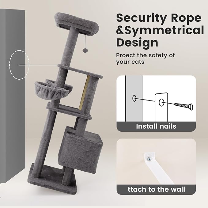 - [6-Level Vertical Paradise | Cat's Dream Playground] 🐈All-in-One Design: Dual hammocks + platforms + sisal posts + condo, perfect for climbing, scratching, napping, and hiding. 🔧Tool-Free Assembly: Includes instructions and tools for 10-15 minute setup.