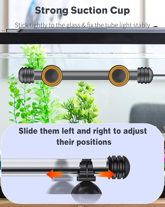 - 7.5" in Length: This aquarium LED light works best in small tanks β sufficient to light up the entire tank anytime to promote the healthy growth of aquatic lives. It can be easily fixed on your tank with the attached suction cups.