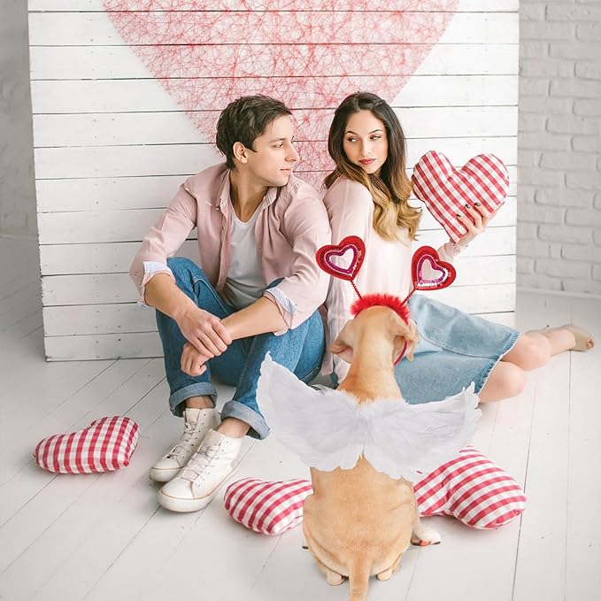 - VALENTINE'S DAY THEMED DESIGN: Inspired by human Valentine's Day. The angel white feather wings, head band and red heart headband set that wiggles when running. Let your fur baby spend every important holiday with you and make more wonderful memories