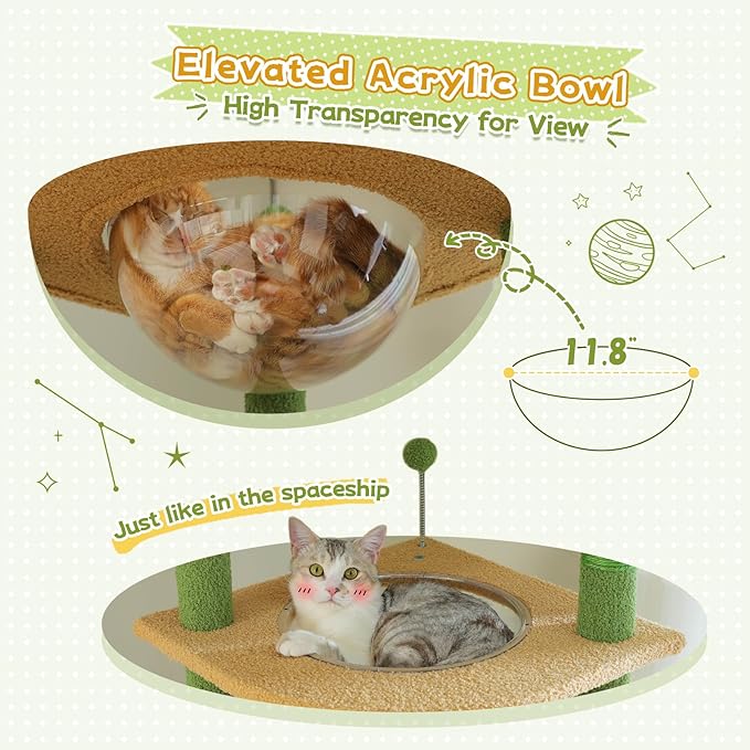 - IDEAL REST AREA: No matter your cats need to lounge in the cradle, have a private nap in the cozy condo, cuddle in the plush hammock or just take a break on the perches, they could find their exclusive zone in no time. The elevated acrylic nest is not only a fashionable bed for your furry friends, but also an observation deck to enjoy the superb view out of the window