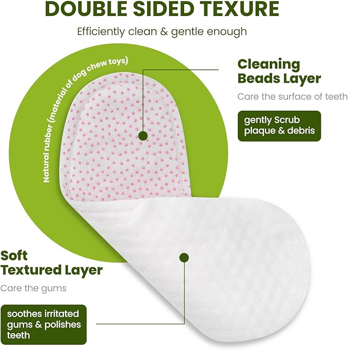 - 【Dual-Texture Design - Puppy-Gentle 】Our dog finger toothbrush features a unique design with different textures on both sides. This teeth cleaner for dogs has a Cleaning Grid on one side, which target plain between teeth with raised nuts. The other side has a Massage Texture, which also massage gums while cleaning for gum health support.