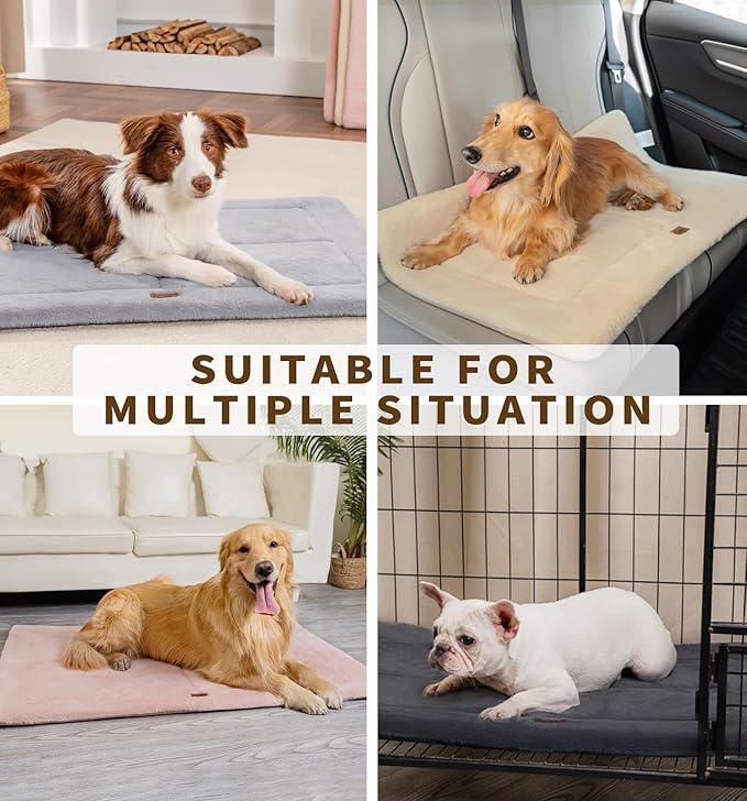 - Ultra-Soft & Cozy Comfort - Made with ultra-soft faux fur, this dog crate pad offers a plush surface that soothes anxiety, improves sleep, and provides joint support. Perfect for pets of all ages, it ensures your furry friend enjoys a restful, comfortable sleep every night