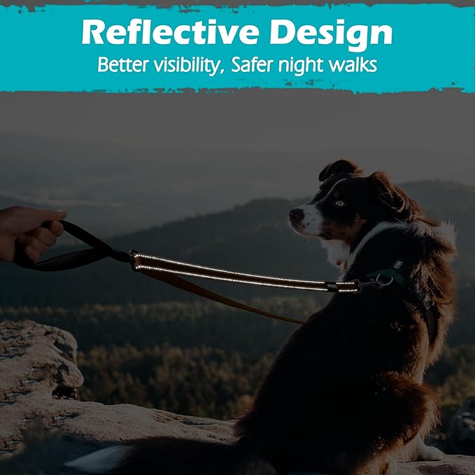 PetBonus Two Point Control Dog Leash, Works with No Pull Harnesses, No Tangle Dog Training Leashes, No Pull Padded and Reflective Walking Lead, Converts to Single Leash for Medium Large Dogs (Brown)