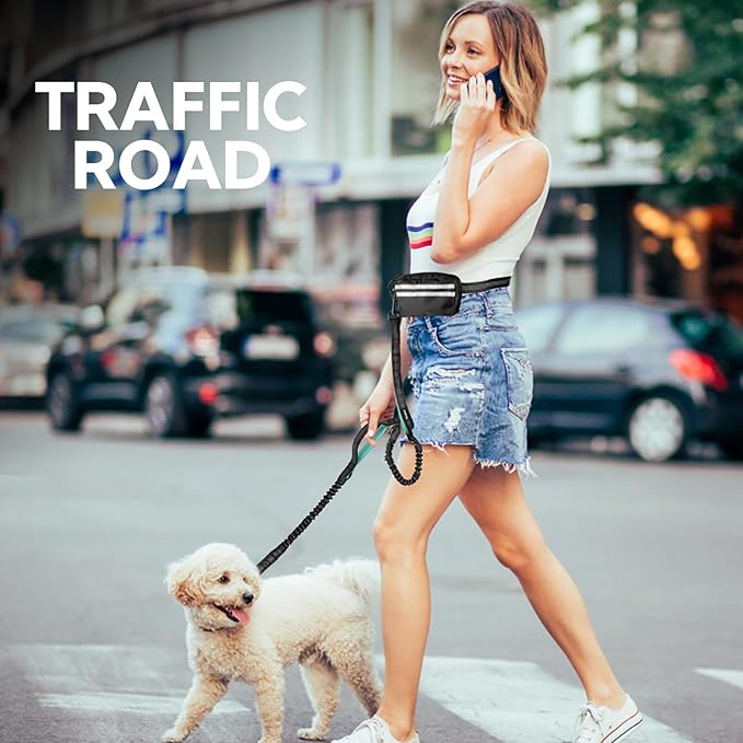 - Double Handle for Better Control: Walk more safely with your pet by using this double handle dog leash! The top handle is ideal for use as a regular puppy leash . Alternatively, the bottom leash can be used as a traffic leash , allowing you to bring your dog closer to you in crowded situations! The handles of the handsfree leash for dogs are nicely padded, helps with better training and control of the dog, which is a good training leash for dogs!