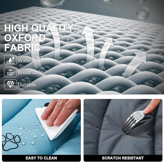 - WATERPROOF PREMIUM FABRIC: Made with waterproof, breathable, and durable Oxford fabric, this dog outdoor bed withstands harsh outdoor conditions and prevents pet urine leaks, keeping odors at bay. The double-layer spray-bonded cotton filling provides a soft, comfortable surface while offering long-lasting support for your pet