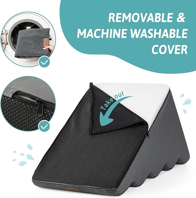 - LEAKPROOF & EASY TO USE: The climbing surface of the dog stairs is made of leak-proof material, so you donβt have to worry about your dog peeing on the stairs. The bottom is made of non-slip nylon to minimize the movement of the stairs. The two sides of the stairs are made of wear-resistant cotton and linen for dogs to sharpen their claws, and there is a convenient handle at the back for easy carrying