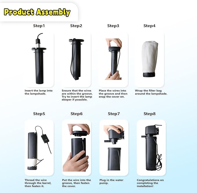 - Efficient Algae C-ontrol: The aquarium filter UV lamp and membrane bag filtration clear green water within 3-7 days; larger or older tanks may take longer