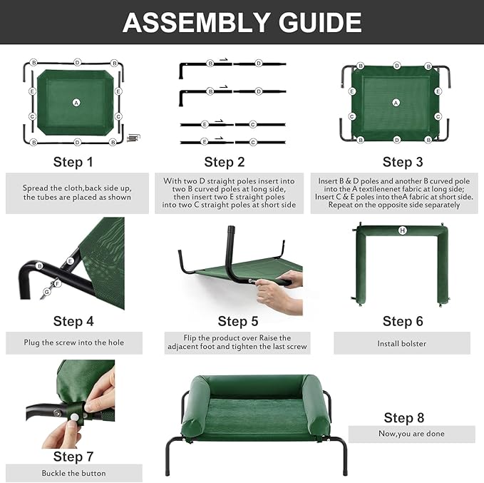 - 【EASY ASSEMBLE COOLING ELEVATED DOG BED SIZE】: Outdoor elevated dog bed for medium and large dogs up to 100 lbs. Very easy to assemble — setup takes just minutes, and even seniors or children can do it. The lightweight design adds portability, making it perfect for travel.