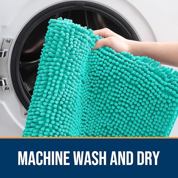 OLANLY Dog Door Mat for Muddy Paws 59x20, Absorbs Moisture and Dirt, Absorbent Non-Slip Washable Doormat, Quick Dry Chenille Mud Mat for Dogs, Entry Indoor Entryway Carpet for Inside Floor, Teal