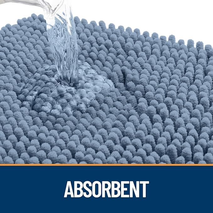 OLANLY Dog Door Mat for Muddy Paws 59x20, Absorbs Moisture and Dirt, Absorbent Non-Slip Washable Doormat, Quick Dry Chenille Mud Mat for Dogs, Entry Indoor Entryway Carpet for Inside Floor, Airy Blue