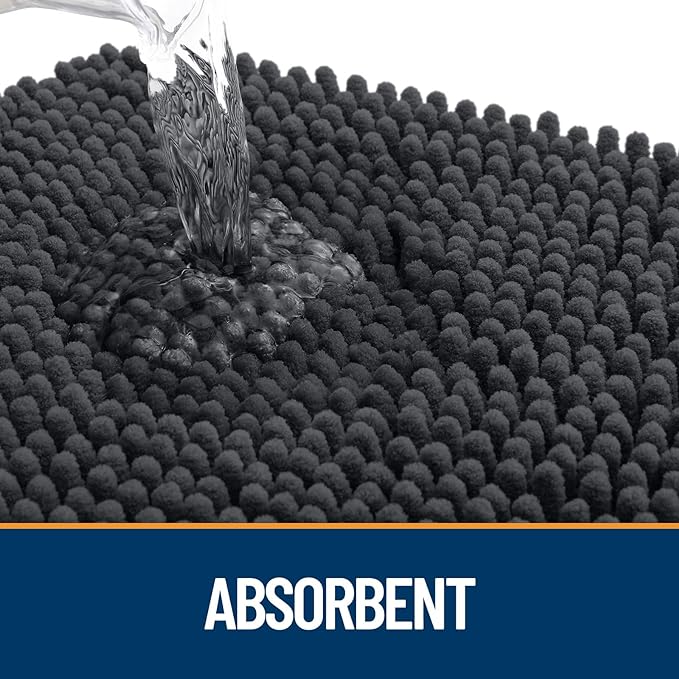 OLANLY Dog Door Mat for Muddy Paws 59x20, Absorbs Moisture and Dirt, Absorbent Non-Slip Washable Doormat, Quick Dry Chenille Mud Mat for Dogs, Entry Indoor Entryway Carpet for Inside Floor, Dark Grey