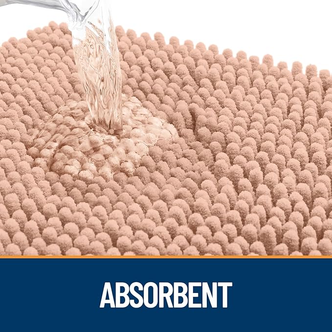 OLANLY Dog Door Mat for Muddy Paws 30x20, Absorbs Moisture and Dirt, Absorbent Non-Slip Washable Doormat, Quick Dry Chenille Mud Mat for Dogs, Entry Indoor Entryway Carpet for Inside Floor, Peach