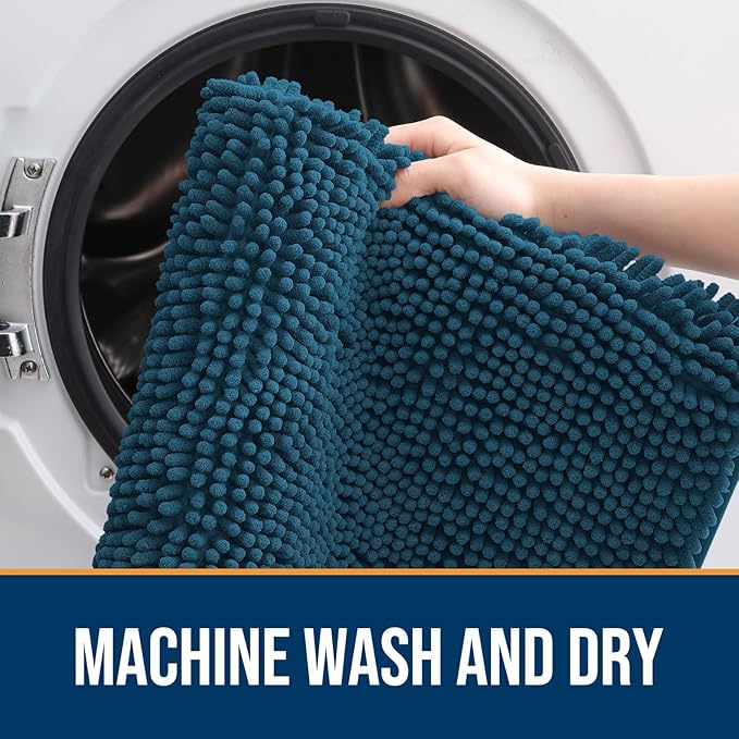 OLANLY Dog Door Mat for Muddy Paws 40x24, Absorbs Moisture and Dirt, Absorbent Non-Slip Washable Doormat, Quick Dry Chenille Mud Mat, Entry Indoor Entryway Carpet for Inside Floor, Atlantic Blue