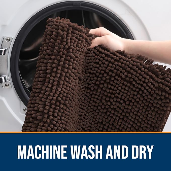 OLANLY Dog Door Mat for Muddy Paws 44x24, Absorbs Moisture and Dirt, Absorbent Non-Slip Washable Doormat, Quick Dry Chenille Mud Mat for Dogs, Entry Indoor Entryway Carpet for Inside Floor, Brown