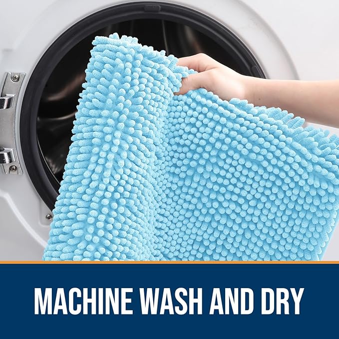 OLANLY Dog Door Mat for Muddy Paws 44x24, Absorbs Moisture and Dirt, Absorbent Non-Slip Washable Doormat, Quick Dry Chenille Mud Mat for Dogs, Entry Indoor Entryway Carpet for Inside Floor, Blue